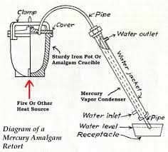 Untuk menghapus semua logam terlarut / digabung dari Mercury Anda harus retort atau menyaring itu. Menggunakan Asam nitrat merupakan alternatif bagi sejumlah kecil amalgam (Apa Itu Amalgamasi ), dan saya akan berbicara lebih lanjut tentang bahwa dalam satu menit. Pastikan jika Anda menggunakan merkuri biaya, bahwa Anda telah habis sebelum Anda retort itu. Dalam rangka untuk menyaring Mercury Anda harus membeli retort Mercury. Mereka relatif murah. Ya, Anda dapat membuat retort dari besi pipa Fitting dll, tetapi jika dirancang dengan baik, ini dapat nyaman untuk digunakan. Namun dengan sedikit perencanaan, desain dan beberapa pengelasan, retort yang layak dapat dibuat dari pipa. Ada berbagai metode yang digunakan untuk mendinginkan uap merkuri yang keluar dari retort. Ada dua jenis Mercury retort, yang vented dan non-vented. Non-vented tipe hanyalah sebuah bejana mendidih dan tabung pendingin yang menetes Mercury ke dalam kapal tangkapan. Dengan jenis retort pernah menempatkan ujung keluar di bawah air dalam bejana menangkap. Jika Anda melakukannya, penurunan yang sangat kecil dalam suhu Merkurius mendidih akan membuat vakum yang cukup untuk menyedot air kembali melalui sistem kanan ke Mercury mendidih. Ini hampir pasti akan membuat ledakan, meniup besi pecahan peluru, uap merkuri beracun dan emas Anda di semua tempat. Tolong percaya saya ketika saya memberitahu Anda, bahwa itu adalah ide yang buruk dan sangat berbahaya! Ini juga dapat merusak sisa hidup Anda dan mungkin menempatkan Anda di rumah sakit (jika Anda beruntung). Satu hal yang perlu diperhatikan adalah bahwa sebagai merkuri keluar dari retort dan ke wadah merkuri, permukaan air akan naik karena merkuri ditambahkan ke stopkontak. Hal ini perlu diperhatikan agar Anda tidak mendapat masalah dengan masalah air yang tersedot ke kapal retort seperti dijelaskan di atas.